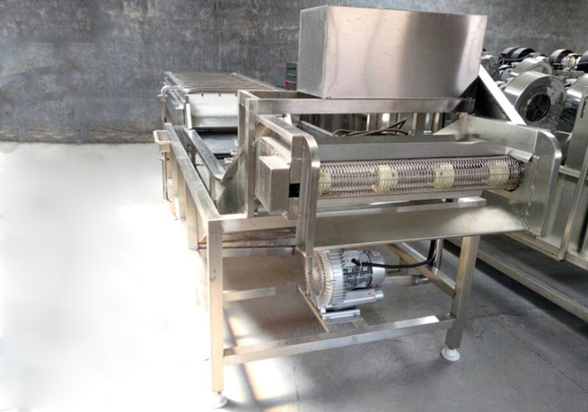 該流水線主要由清洗段、提升輸送段、震動瀝水段以及風干除水段組成,主要用于袋裝食品的高低溫殺菌后,產品表面油污、油漬的連續清洗及風干。